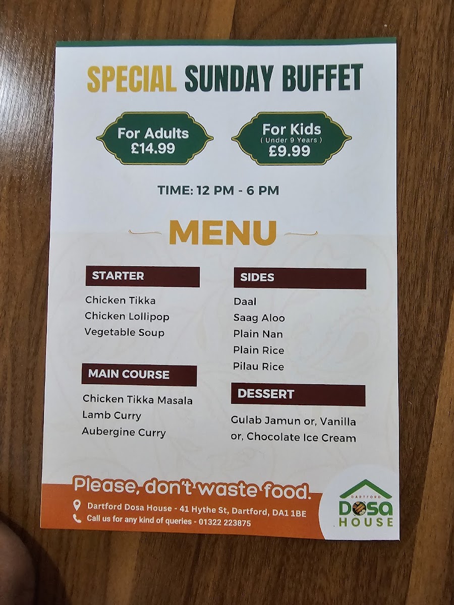 Dartford Dosa House, located at 41 Hythe St, Dartford DA1 1BE, United Kingdom, offers a delightful dining experience, particularly for those seeking authentic South Indian flavors. The Dartford Dosa House Menu is packed with a variety of traditional dishes that highlight the rich culinary heritage of the region.